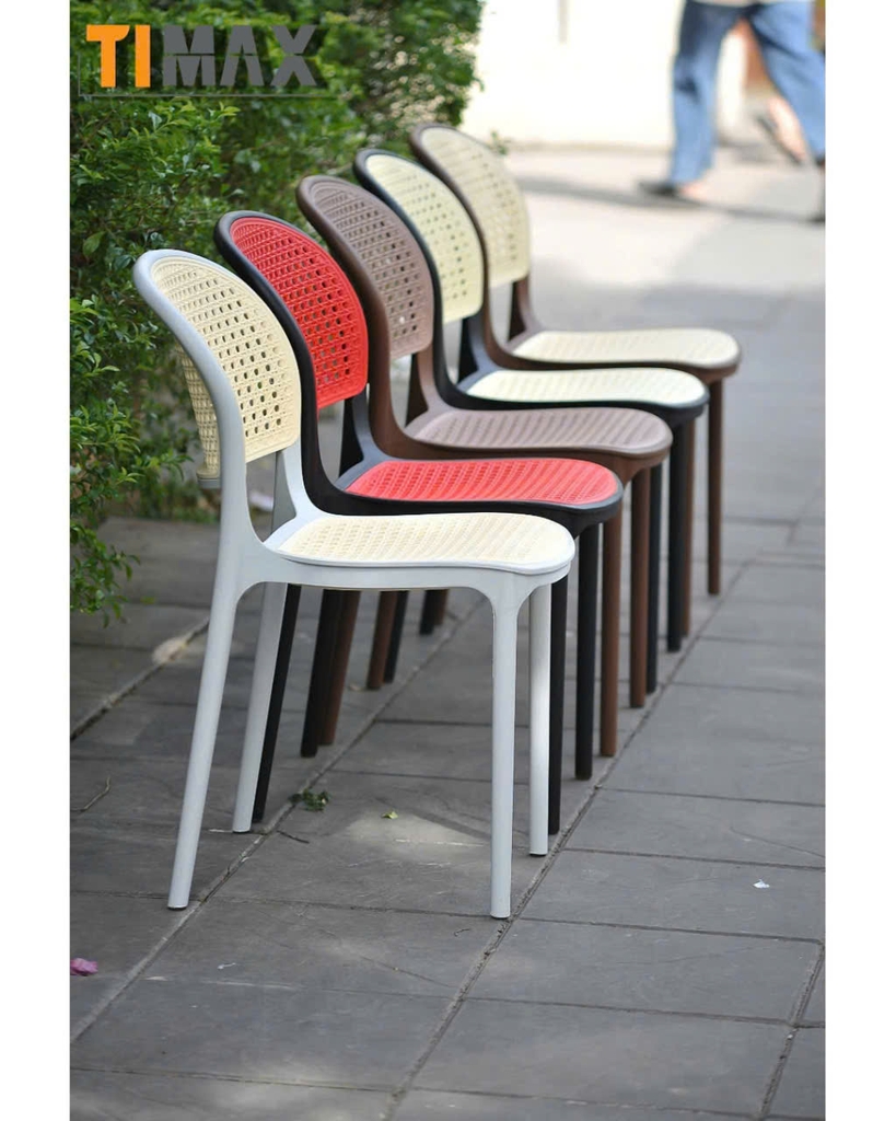 Ghế nhựa đúc lưới giả mây không tay vịn